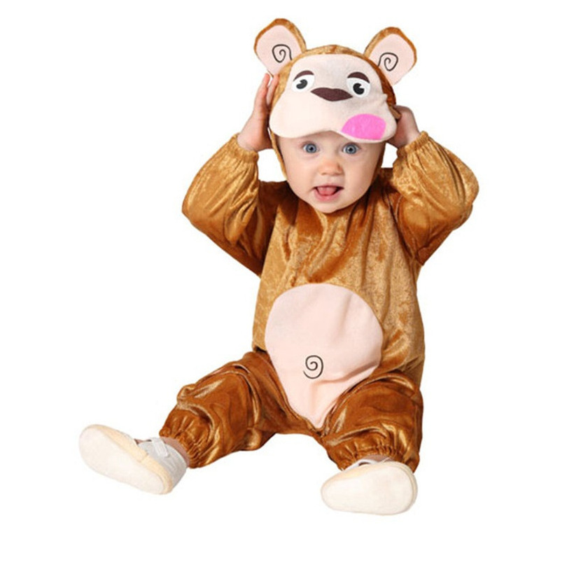 Tover je peuter in een oogwenk om tot het allerliefste aapje met deze schattige verkleedset voor kinderen van 1 tot 3 jaar. Het zachte pakje met lange mouwen en broekspijpen biedt optimaal comfort en bewegingsvrijheid, terwijl de handige drukknoopjes aan de onderkant het aan- en uitkleden supermakkelijk maken. Het bijpassende mutsje met vrolijk apenkopje maakt de look helemaal compleet.