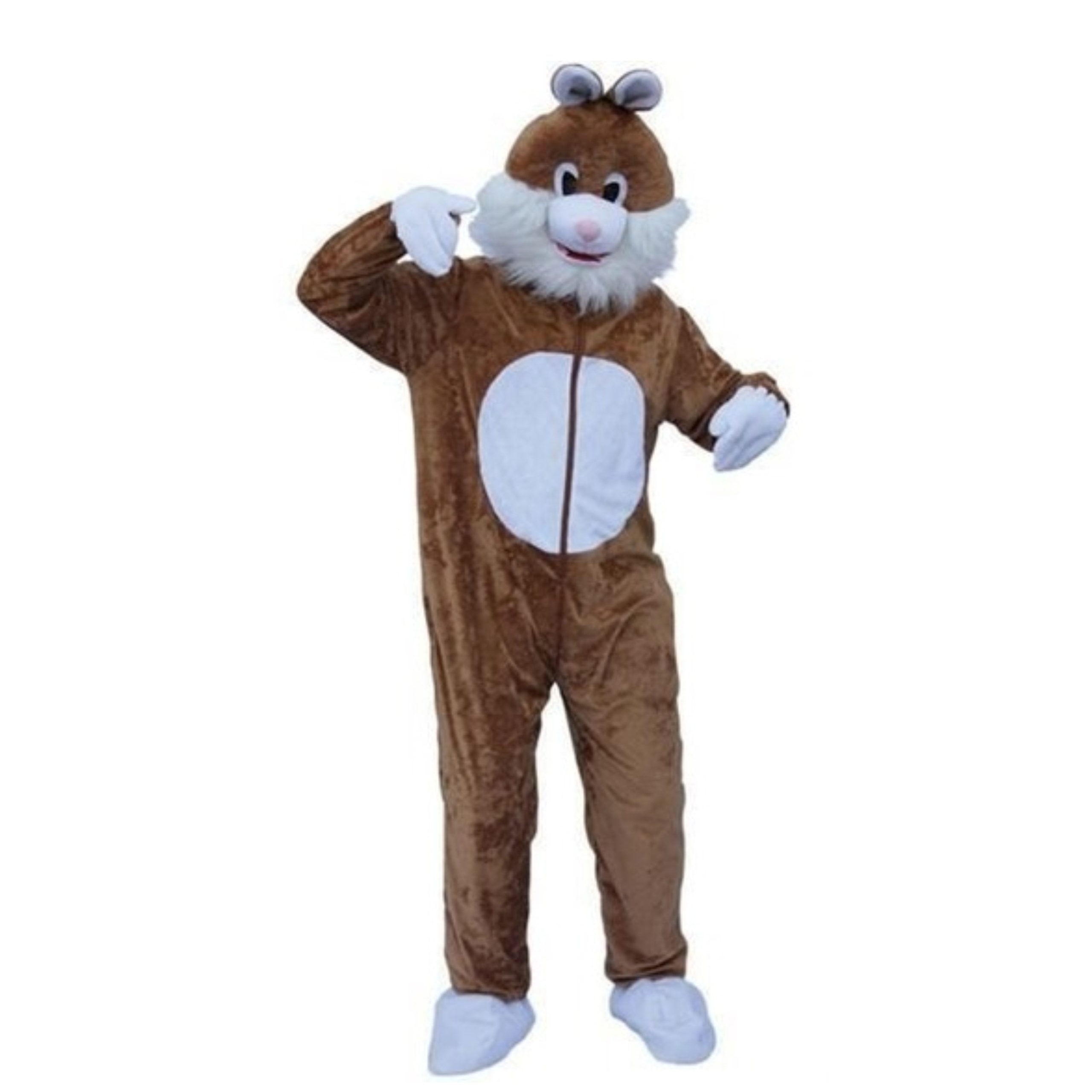 Ontdek het ultieme pluche paashaas kostuum voor volwassenen in een warme, bruine kleur met witte details. Dit zachte en comfortabele dierenpak is gemaakt van hoogwaardig pluche materiaal en biedt een knusse pasvorm voor iedereen dankzij de one size fits all maat. Perfect voor feestdagen, themafeesten of promotionele acties.