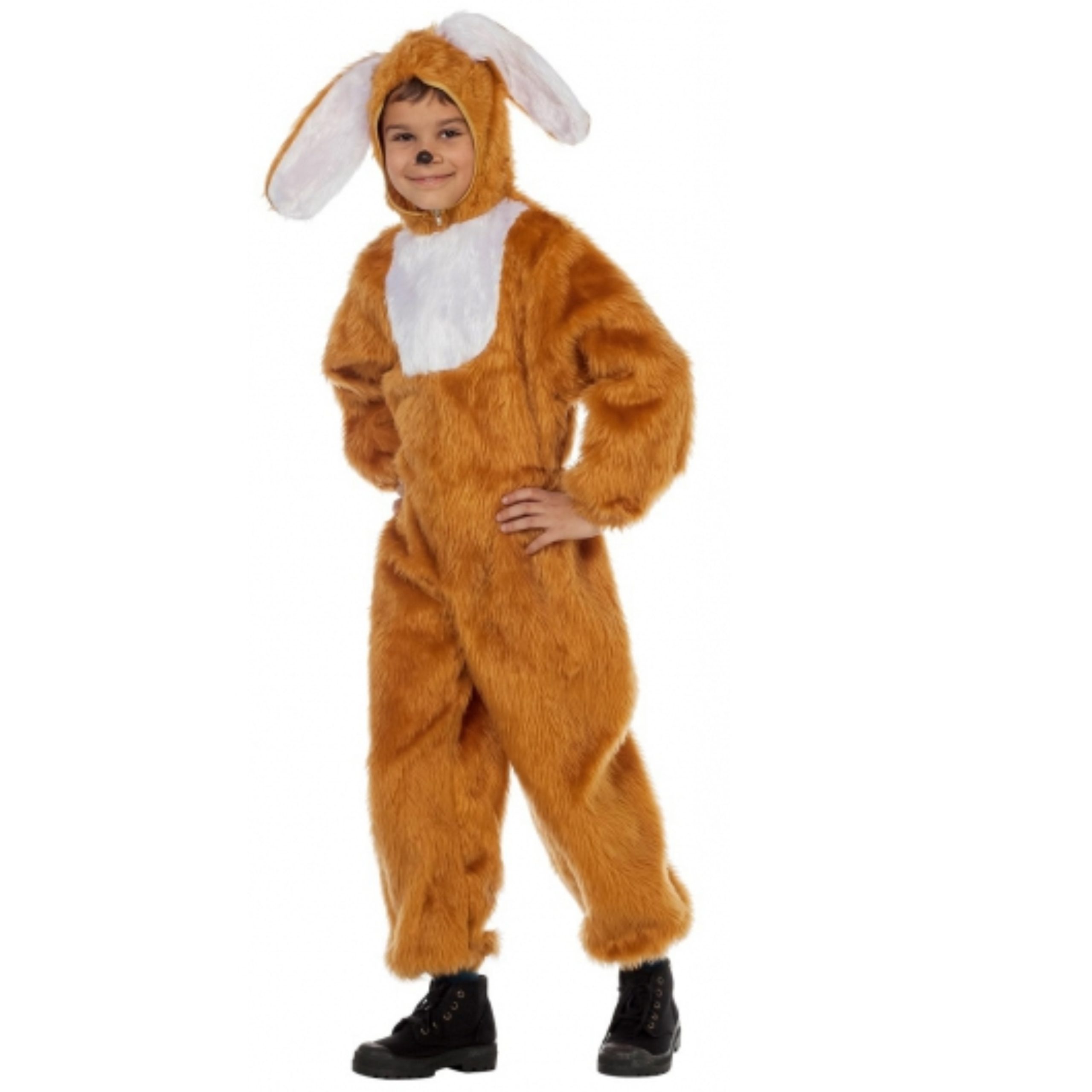 Pluche paashaas pak voor kinderen, dit schattige en comfortabele pluche paashaas pak is perfect voor kinderen die zich willen verkleden als een paashaas of konijn. De onesie/jumpsuit is uitgevoerd in een zachte bruine pluche stof die niet alleen lekker warm is, maar ook een knuffelbaar uiterlijk geeft. Het pak heeft een capuchon met konijnenoortjes en een schattig snoetje van een haas, waardoor het ideaal is voor Pasen, carnaval, feestjes, of verkleedpartijtjes.