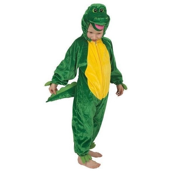 Groen krokodil kostuum voor kinderen van pluche. Een stoere maar schattig kostuum van een krokodil voor kinderen. Dit krokodil kostuum is groen met geel, 1 geheel, en sluit met een rits bij de buik. Bij de polsen en de enkeltjes zitten echte pootjes en op het hoofd van uw kind ligt een krokodillenhoofd.