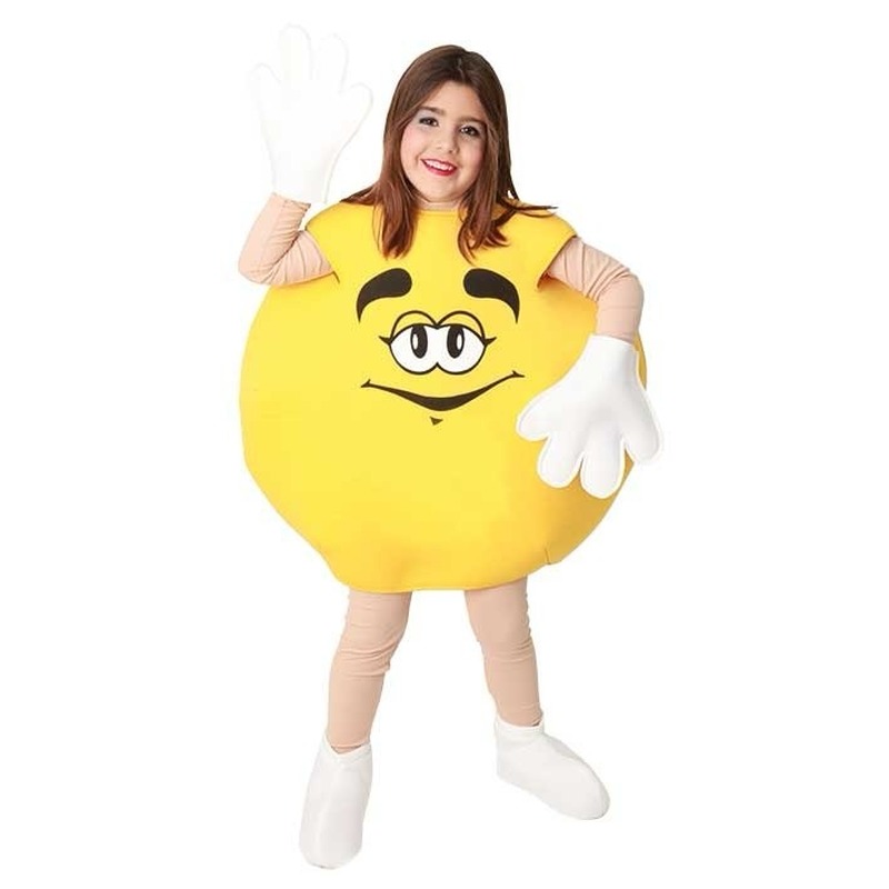 Geel carnaval verkleed kostuum snoepje kinderen. Compleet kinder kostuum van een snoepje in de kleur geel. Het kostuum bestaat uit het snoep lichaam, handschoenen en schoenhoezen. Excl. huidskleurige jumpsuit. De onderkant van het kostuum is open. Geschikt voor kinderen tot 1.40 meter