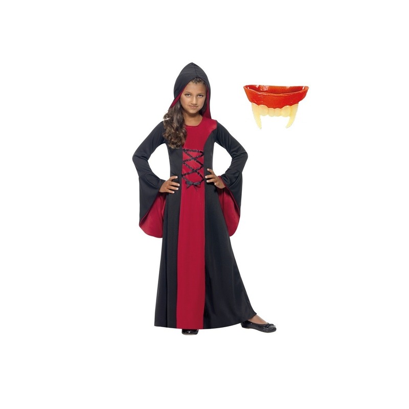 Vampier jurk inclusief gebit voor meisjes