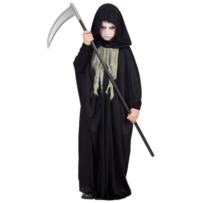 Deze Halloween verkleed cape zwart kinderen is de ideale basis voor een Magere Hein of Vampier kostuum Deze zwarte, lange cape voor kinderen heeft grijze slierten en bevat een capuchon. Deze cape is leuk voor als Halloween kostuum en horror feestje of tijdens carnaval. Let op: de overige accessoires worden niet meegeleverd.