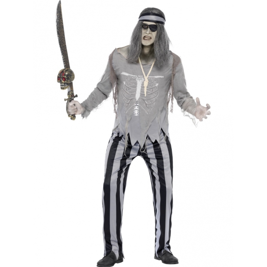 Piraten zeerover spook kostuum voor heren. Grijs piraat geest kostuum voor heren, inclusief broek, shirt en hoofdband.