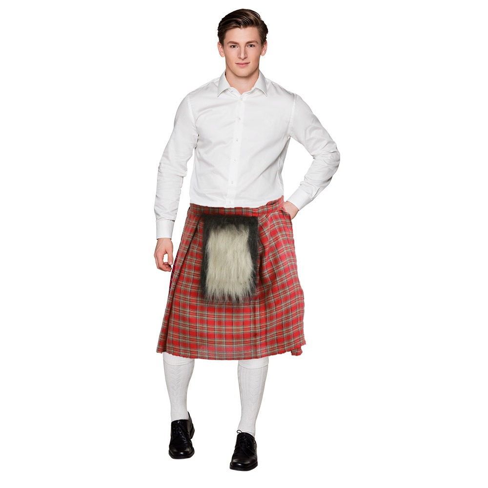 Schotse kilt rood met bontje voor heren – Schotse rok