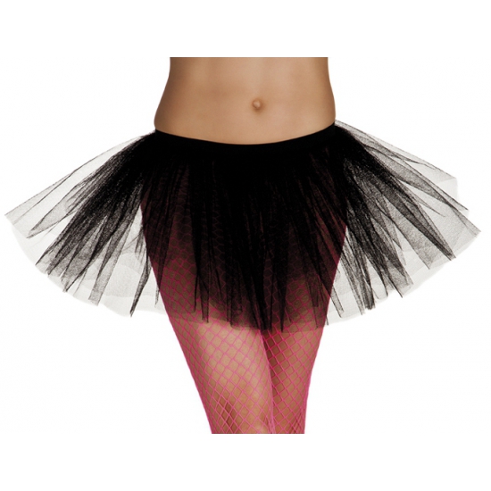Zwart Tutu onderrok voor dames. Deze tutu onderrok kan gebruikt worden onder een rok of als ballet tutu. Maat: one size. Afmeting: c.a. lengte 25 cm, 100cm breed, elastische band. Carnaval verkleedkleding artikel.