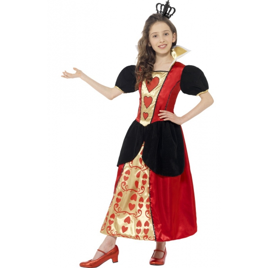 Hartenvrouw jurkje voor meisjes. Mooie rood met zwart hartenvrouw jurkje voor meisjes, bekend van Alice in Wonderland. Inclusief kroon. Materiaal: 100% polyester.
