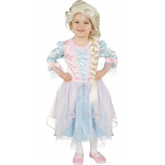 Lichtblauw met roze prinsessenjurk met driekwart mouwen. Materiaal: 100% polyester.